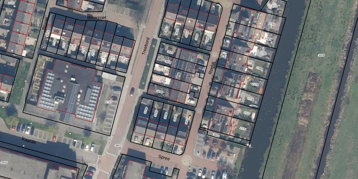 Gebruik de zoekbalk of klik op een perceel voor informatie over de adressen binnen dit perceel.