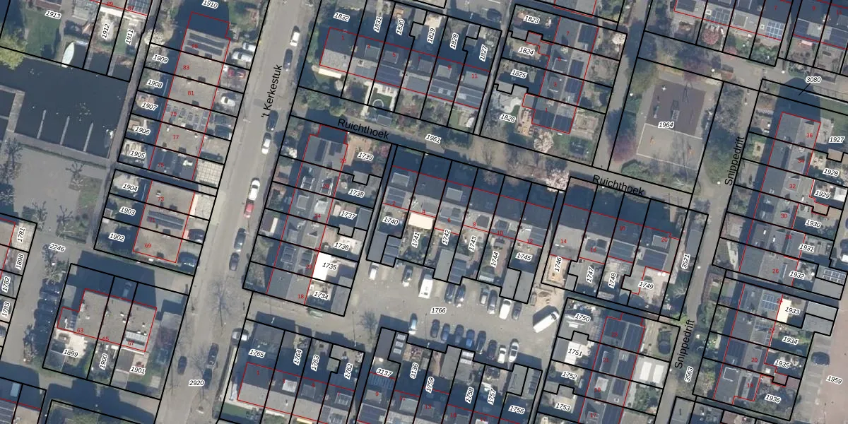 Het perceel waarop Ruichthoek 4 staat heeft een oppervlakte van 191 m². Dit is een middelgroot perceel. De perceeloppervlakte wordt geregistreerd door het Kadaster. Gedetailleerde informatie over de maten van dit perceel kunt u vinden in het rapport Kadastrale kaart met maatvoering van Ruichthoek 4.