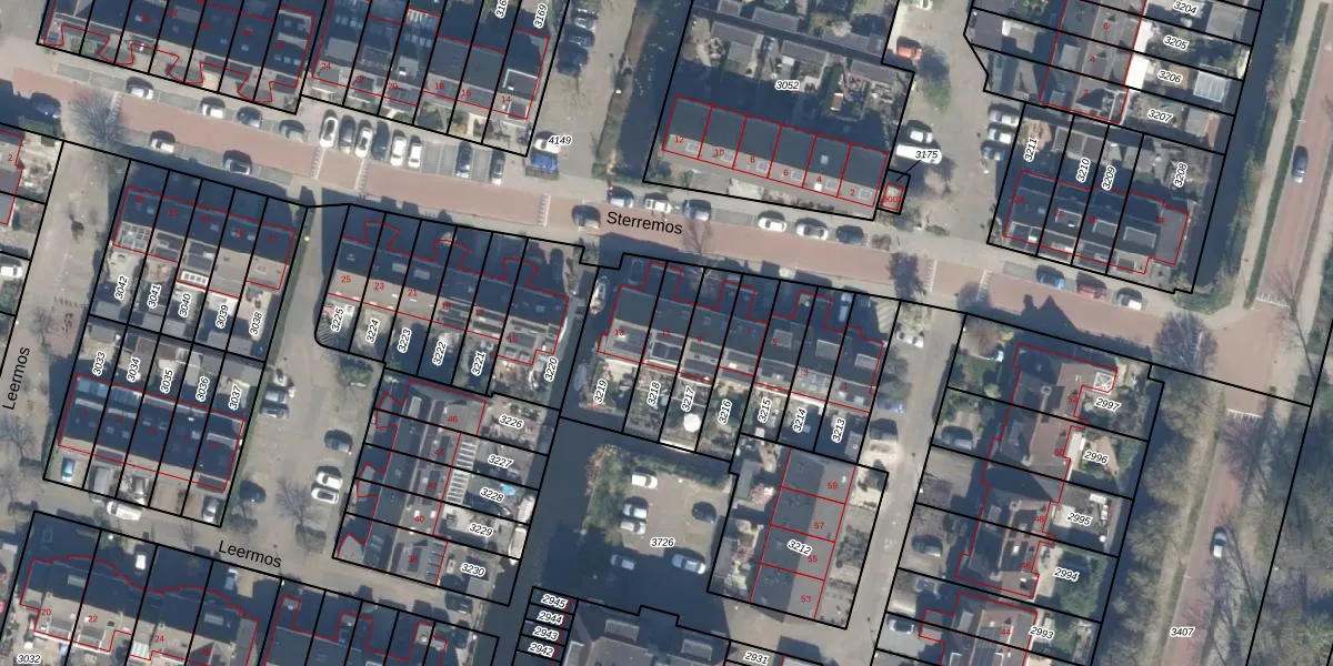 Gebruik de zoekbalk of klik op een perceel voor informatie over de adressen binnen dit perceel.