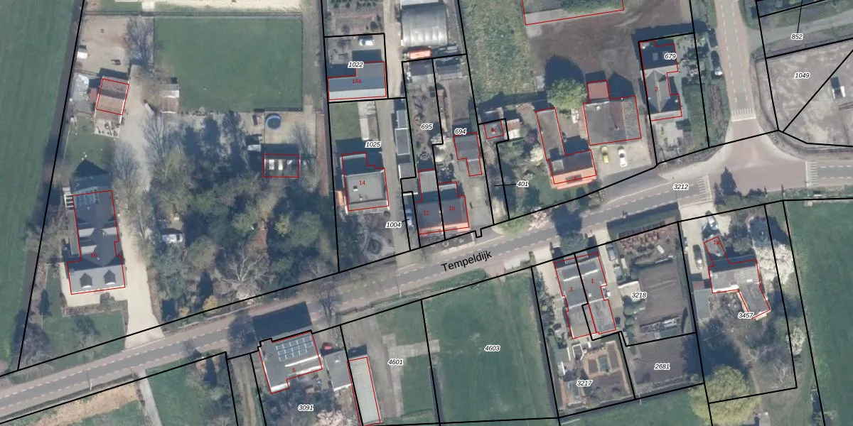 Tempeldijk 12 is gelegen op kadastraal perceel RWK02K695. Deze kadastrale aanduiding is uniek en wordt gebruikt door het Kadaster om eigendomsrechten en andere zakelijke rechten vast te leggen. Het perceel maakt onderdeel uit van de kadastrale gemeente Reeuwijk.