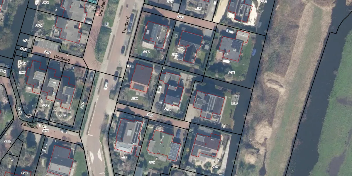 Gebruik de zoekbalk of klik op een perceel voor informatie over de adressen binnen dit perceel.