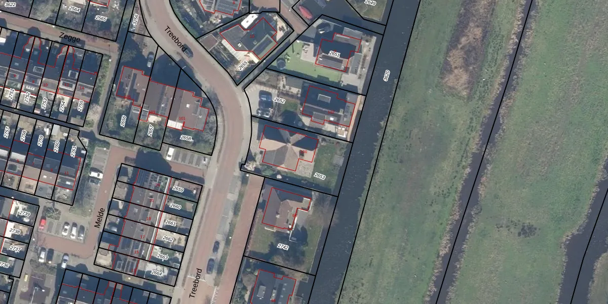Het perceel waarop Treebord 100 staat heeft een oppervlakte van 595 m². Dit is een groot perceel. De perceeloppervlakte wordt geregistreerd door het Kadaster. Gedetailleerde informatie over de maten van dit perceel kunt u vinden in het rapport Kadastrale kaart met maatvoering van Treebord 100.