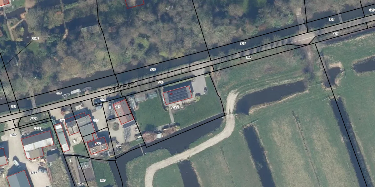 Het perceel waarop Twaalfmorgen 6-b staat heeft een oppervlakte van 1242 m². Dit is een zeer groot perceel. De perceeloppervlakte wordt geregistreerd door het Kadaster. Gedetailleerde informatie over de maten van dit perceel kunt u vinden in het rapport Kadastrale kaart met maatvoering van Twaalfmorgen 6-b.