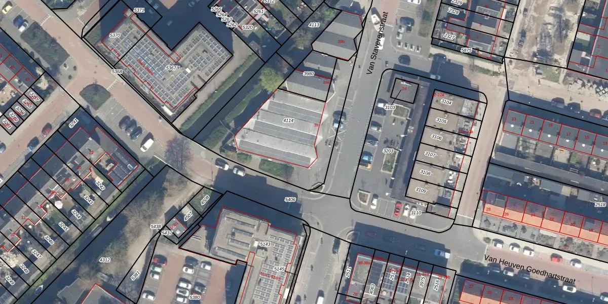 Van Staverenstraat 39 is gelegen op kadastraal perceel RWK02B4114. Deze kadastrale aanduiding is uniek en wordt gebruikt door het Kadaster om eigendomsrechten en andere zakelijke rechten vast te leggen. Het perceel maakt onderdeel uit van de kadastrale gemeente Reeuwijk.