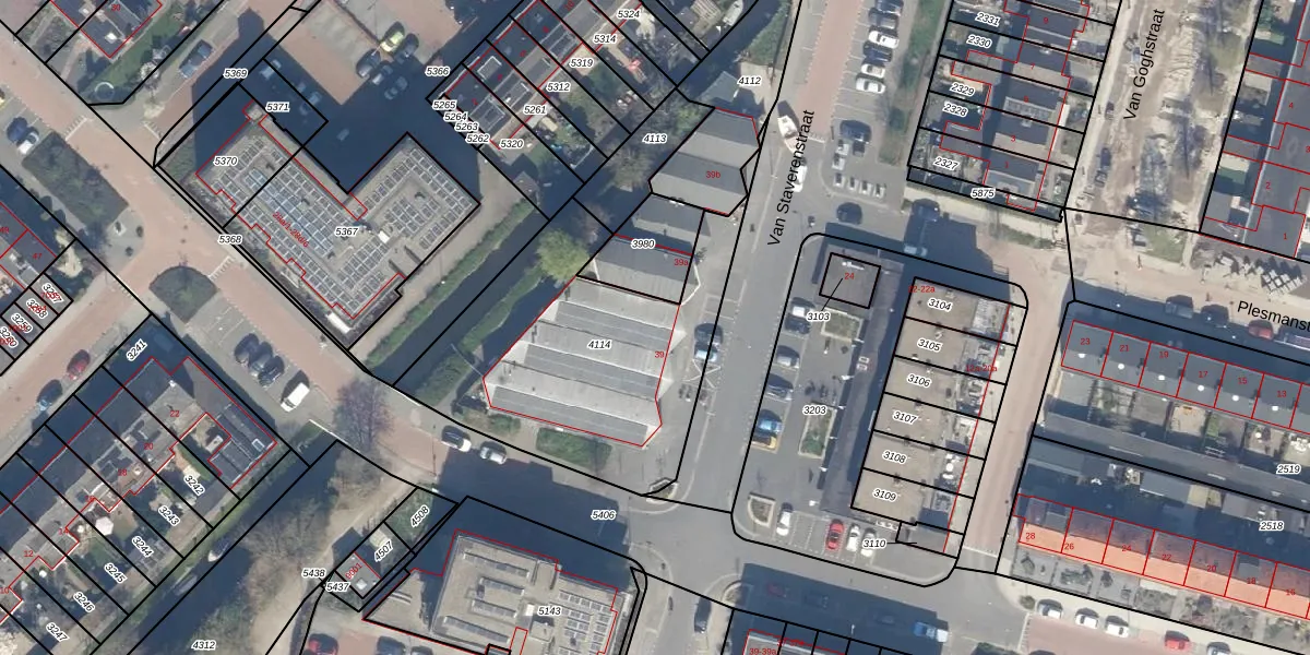 Van Staverenstraat 39-a-1 is gelegen op kadastraal perceel RWK02B4114. Deze kadastrale aanduiding is uniek en wordt gebruikt door het Kadaster om eigendomsrechten en andere zakelijke rechten vast te leggen. Het perceel maakt onderdeel uit van de kadastrale gemeente Reeuwijk.