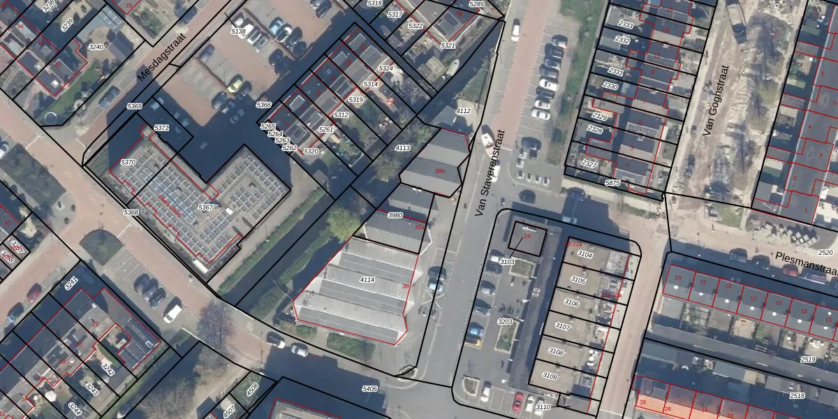 Van Staverenstraat 39-b is gelegen op kadastraal perceel RWK02B3980. Deze kadastrale aanduiding is uniek en wordt gebruikt door het Kadaster om eigendomsrechten en andere zakelijke rechten vast te leggen. Het perceel maakt onderdeel uit van de kadastrale gemeente Reeuwijk.