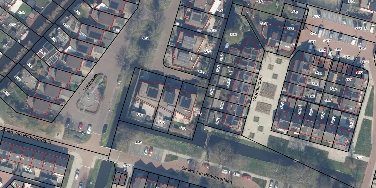 Gebruik de zoekbalk of klik op een perceel voor informatie over de adressen binnen dit perceel.