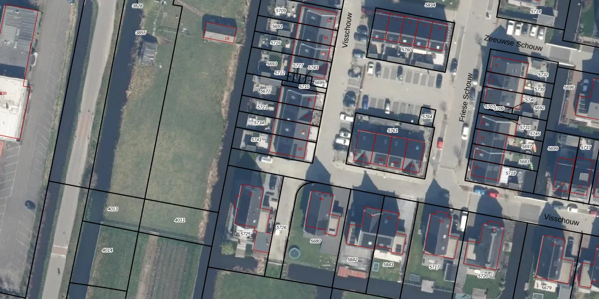 Visschouw 39 is gelegen op kadastraal perceel RWK02B5741. Deze kadastrale aanduiding is uniek en wordt gebruikt door het Kadaster om eigendomsrechten en andere zakelijke rechten vast te leggen. Het perceel maakt onderdeel uit van de kadastrale gemeente Reeuwijk.