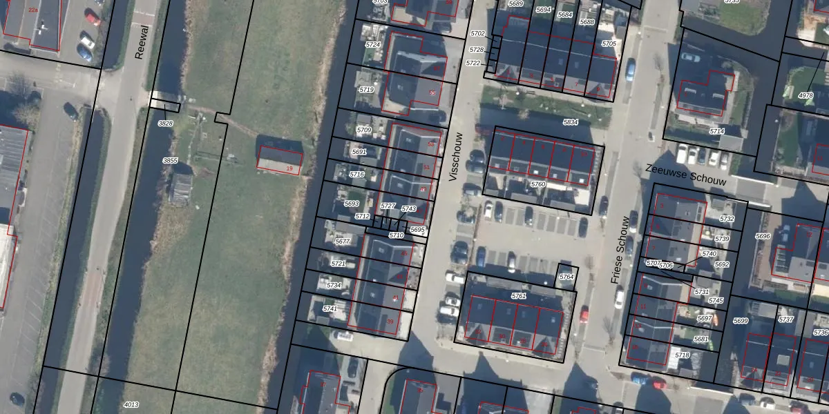 Visschouw 47 is gelegen op kadastraal perceel RWK02B5693. Deze kadastrale aanduiding is uniek en wordt gebruikt door het Kadaster om eigendomsrechten en andere zakelijke rechten vast te leggen. Het perceel maakt onderdeel uit van de kadastrale gemeente Reeuwijk.