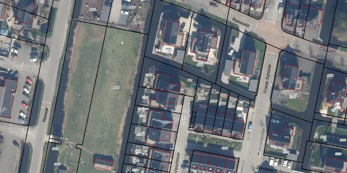 Visschouw 61 is gelegen op kadastraal perceel RWK02B5700. Deze kadastrale aanduiding is uniek en wordt gebruikt door het Kadaster om eigendomsrechten en andere zakelijke rechten vast te leggen. Het perceel maakt onderdeel uit van de kadastrale gemeente Reeuwijk.