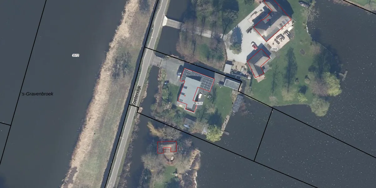 Het perceel waarop Zoetendijk 4 staat heeft een oppervlakte van 2720 m². Dit is een zeer groot perceel. De perceeloppervlakte wordt geregistreerd door het Kadaster. Gedetailleerde informatie over de maten van dit perceel kunt u vinden in het rapport Kadastrale kaart met maatvoering van Zoetendijk 4.