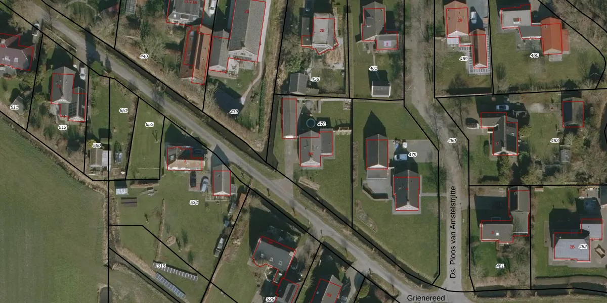 Het perceel waarop Grienereed 2-A staat heeft een oppervlakte van 895 m². Dit is een groot perceel. De perceeloppervlakte wordt geregistreerd door het Kadaster. Gedetailleerde informatie over de maten van dit perceel kunt u vinden in het rapport Kadastrale kaart met maatvoering van Grienereed 2-A.