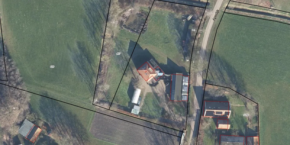 Het perceel waarop Apedijk 14 staat heeft een oppervlakte van 3600 m². Dit is een zeer groot perceel. De perceeloppervlakte wordt geregistreerd door het Kadaster. Gedetailleerde informatie over de maten van dit perceel kunt u vinden in het rapport Kadastrale kaart met maatvoering van Apedijk 14.