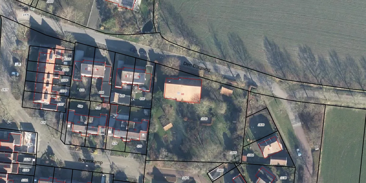Den Borgweg 10 is gelegen op kadastraal perceel EBG02M1030. Deze kadastrale aanduiding is uniek en wordt gebruikt door het Kadaster om eigendomsrechten en andere zakelijke rechten vast te leggen. Het perceel maakt onderdeel uit van de kadastrale gemeente Eibergen.