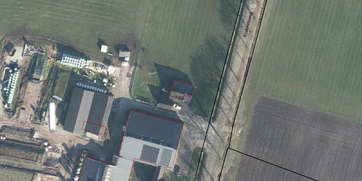 Het perceel waarop Krakeelsweg 9-a staat heeft een oppervlakte van 10,6 ha. Dit is een zeer groot perceel. De perceeloppervlakte wordt geregistreerd door het Kadaster. Gedetailleerde informatie over de maten van dit perceel kunt u vinden in het rapport Kadastrale kaart met maatvoering van Krakeelsweg 9-a.