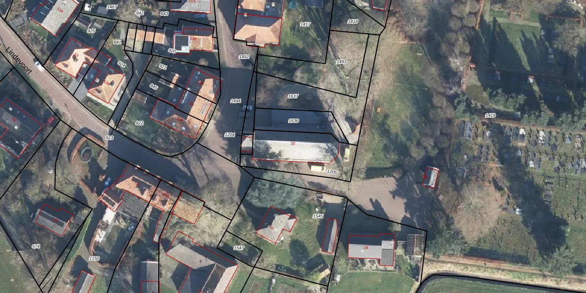 Lindevoort 20 is gelegen op kadastraal perceel EBG02M1205. Deze kadastrale aanduiding is uniek en wordt gebruikt door het Kadaster om eigendomsrechten en andere zakelijke rechten vast te leggen. Het perceel maakt onderdeel uit van de kadastrale gemeente Eibergen.