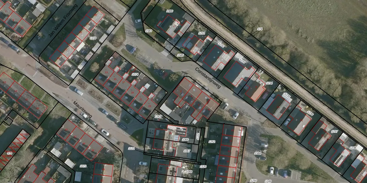 Het perceel waarop Constantijnweg 2 staat heeft een oppervlakte van 1318 m². Dit is een zeer groot perceel. De perceeloppervlakte wordt geregistreerd door het Kadaster. Gedetailleerde informatie over de maten van dit perceel kunt u vinden in het rapport Kadastrale kaart met maatvoering van Constantijnweg 2.