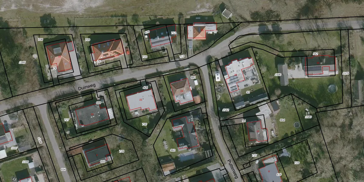 Het perceel waarop Duinweg 24 staat heeft een oppervlakte van 373 m². Dit is een groot perceel. De perceeloppervlakte wordt geregistreerd door het Kadaster. Gedetailleerde informatie over de maten van dit perceel kunt u vinden in het rapport Kadastrale kaart met maatvoering van Duinweg 24.