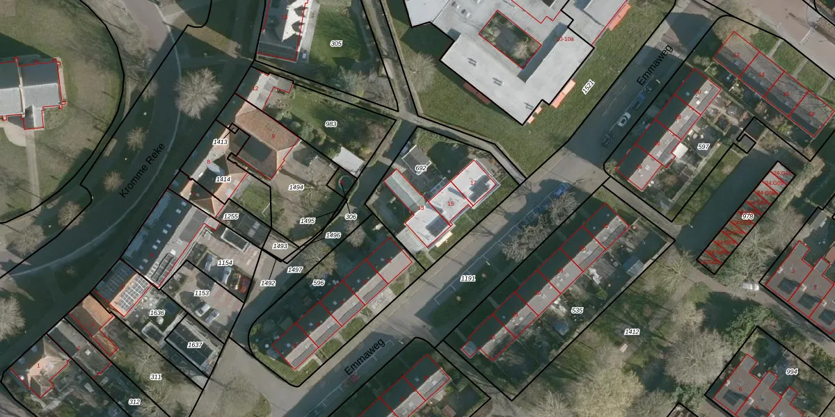 Het perceel waarop Emmaweg 13 staat heeft een oppervlakte van 690 m². Dit is een groot perceel. De perceeloppervlakte wordt geregistreerd door het Kadaster. Gedetailleerde informatie over de maten van dit perceel kunt u vinden in het rapport Kadastrale kaart met maatvoering van Emmaweg 13.