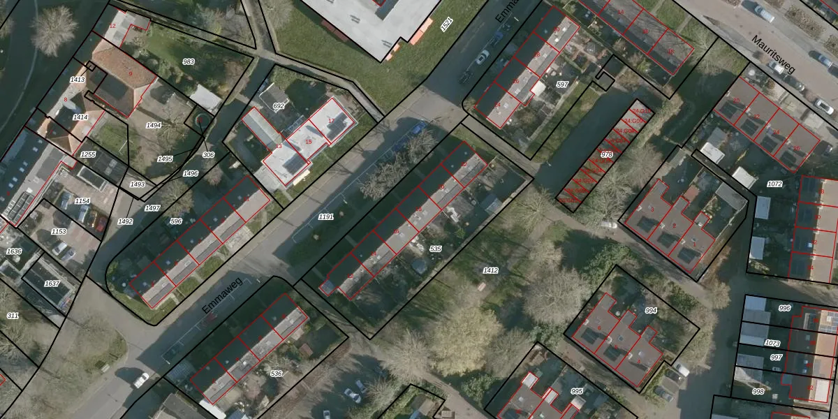 Het perceel waarop Emmaweg 18 staat heeft een oppervlakte van 1185 m². Dit is een zeer groot perceel. De perceeloppervlakte wordt geregistreerd door het Kadaster. Gedetailleerde informatie over de maten van dit perceel kunt u vinden in het rapport Kadastrale kaart met maatvoering van Emmaweg 18.