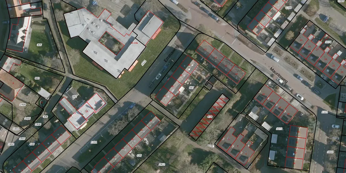 Het perceel waarop Emmaweg 26 staat heeft een oppervlakte van 1405 m². Dit is een zeer groot perceel. De perceeloppervlakte wordt geregistreerd door het Kadaster. Gedetailleerde informatie over de maten van dit perceel kunt u vinden in het rapport Kadastrale kaart met maatvoering van Emmaweg 26.