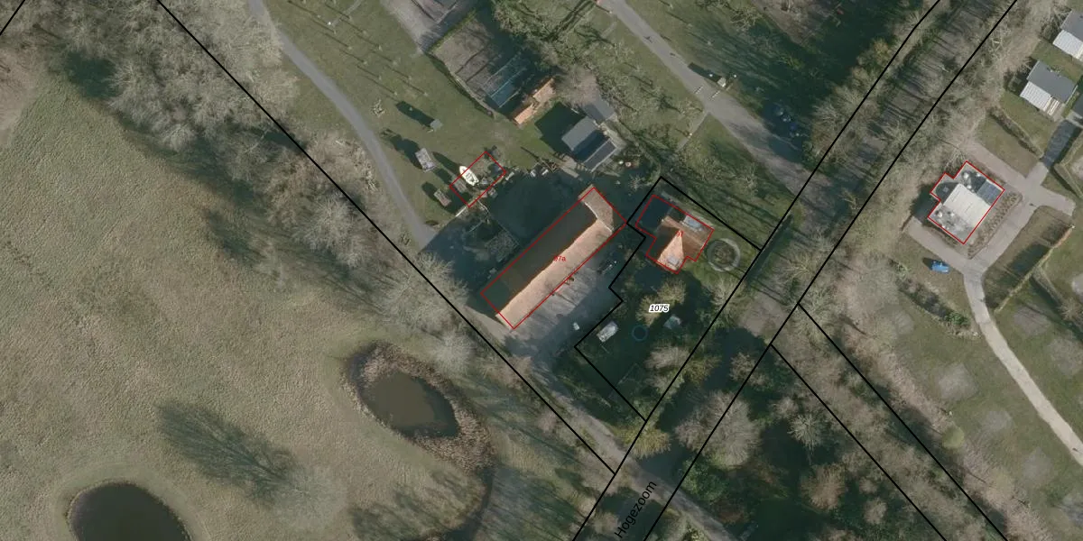 Het perceel waarop Hogezoom 97-a staat heeft een oppervlakte van 4,5 ha. Dit is een zeer groot perceel. De perceeloppervlakte wordt geregistreerd door het Kadaster. Gedetailleerde informatie over de maten van dit perceel kunt u vinden in het rapport Kadastrale kaart met maatvoering van Hogezoom 97-a.