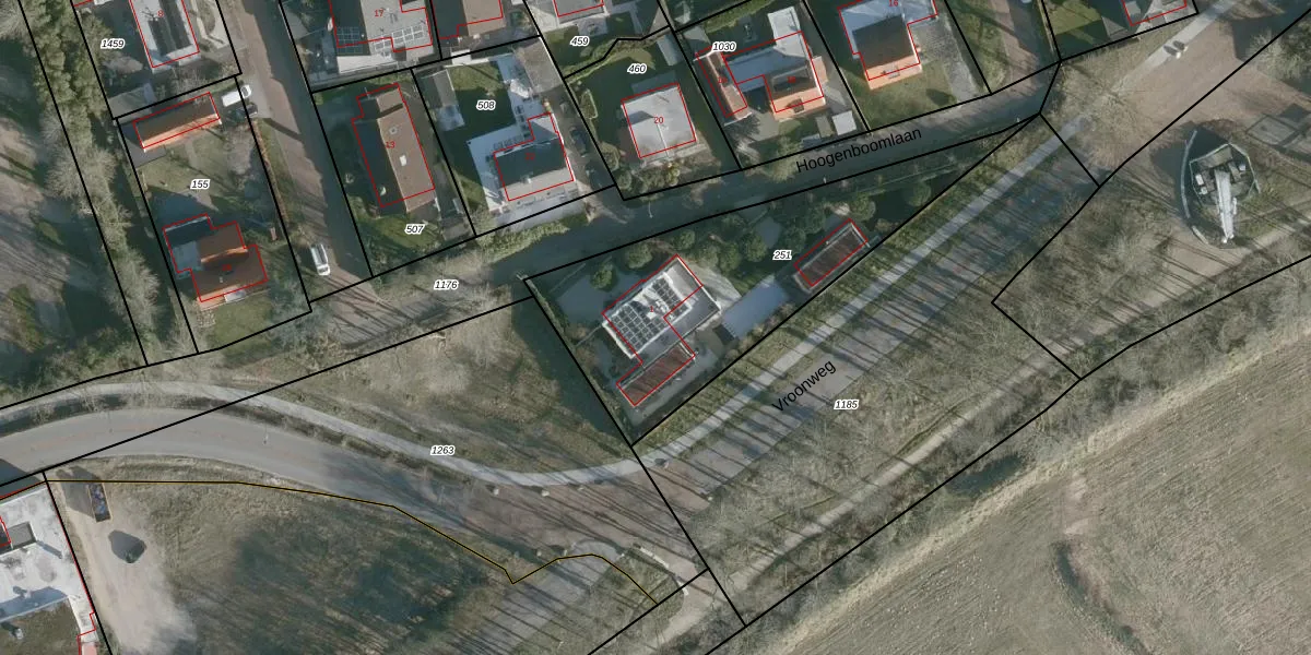 Hoogenboomlaan 1 is gelegen op kadastraal perceel WTS00A251. Deze kadastrale aanduiding is uniek en wordt gebruikt door het Kadaster om eigendomsrechten en andere zakelijke rechten vast te leggen. Het perceel maakt onderdeel uit van de kadastrale gemeente Westerschouwen.