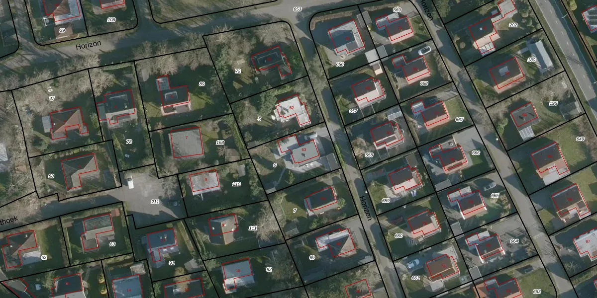 Het perceel waarop Horizon 63 staat heeft een oppervlakte van 448 m². Dit is een groot perceel. De perceeloppervlakte wordt geregistreerd door het Kadaster. Gedetailleerde informatie over de maten van dit perceel kunt u vinden in het rapport Kadastrale kaart met maatvoering van Horizon 63.
