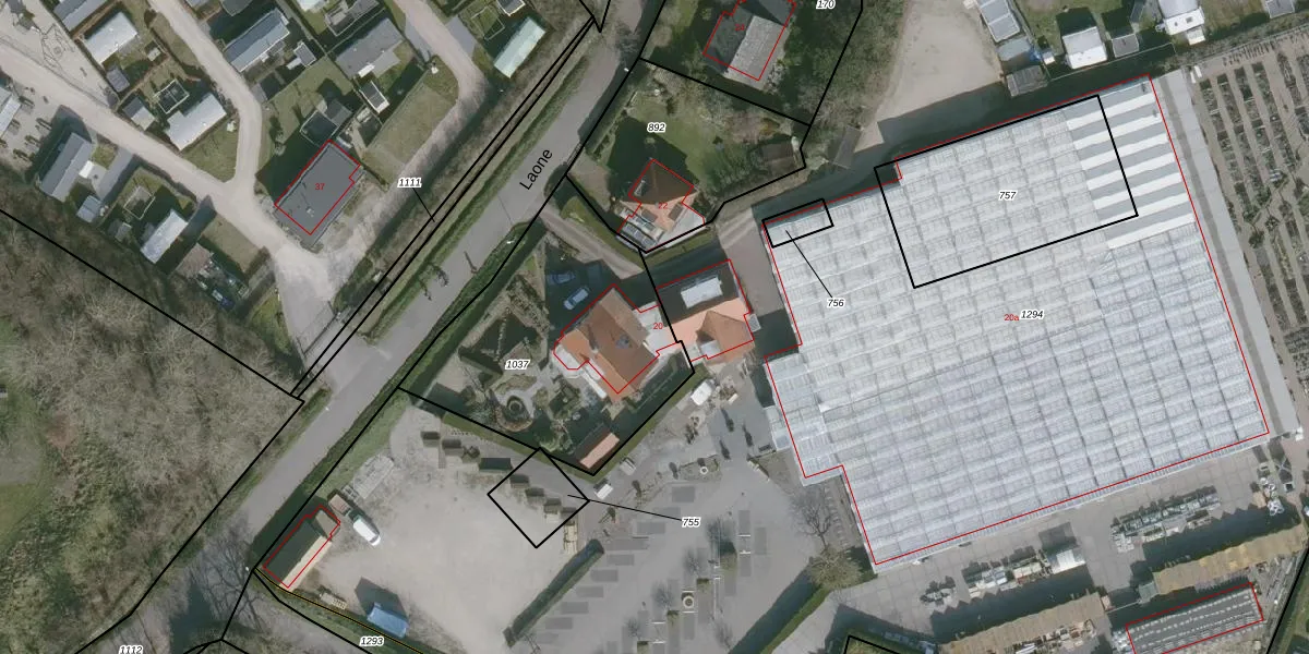 Het perceel waarop Laone 20 staat heeft een oppervlakte van 1060 m². Dit is een zeer groot perceel. De perceeloppervlakte wordt geregistreerd door het Kadaster. Gedetailleerde informatie over de maten van dit perceel kunt u vinden in het rapport Kadastrale kaart met maatvoering van Laone 20.