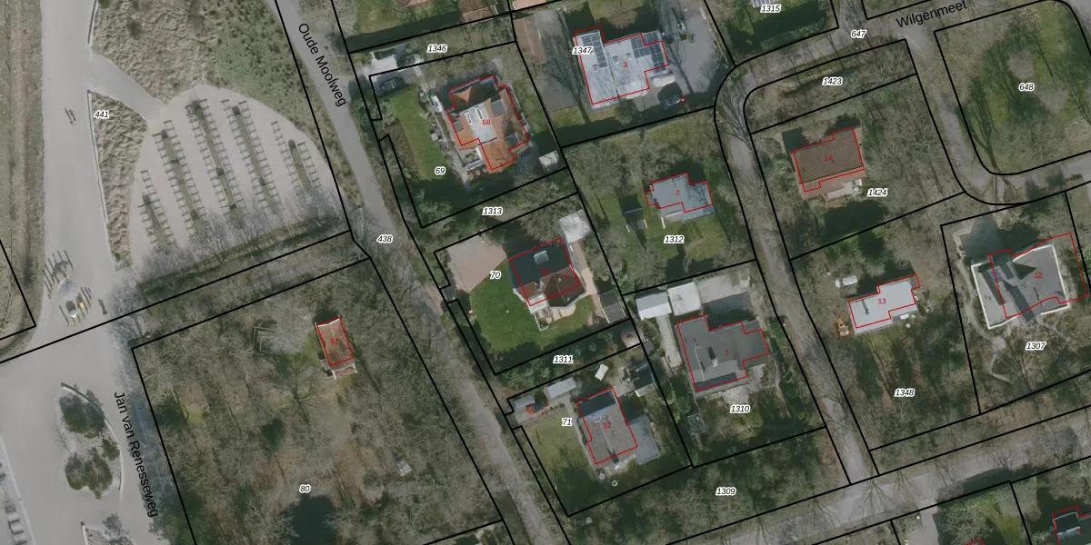Oude Moolweg 54 is gelegen op kadastraal perceel WTS00A70. Deze kadastrale aanduiding is uniek en wordt gebruikt door het Kadaster om eigendomsrechten en andere zakelijke rechten vast te leggen. Het perceel maakt onderdeel uit van de kadastrale gemeente Westerschouwen.