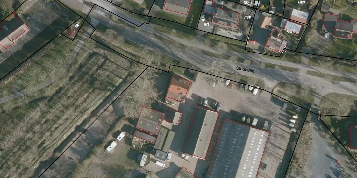 Het perceel waarop Stoofweg 10 staat heeft een oppervlakte van 3,7 ha. Dit is een zeer groot perceel. De perceeloppervlakte wordt geregistreerd door het Kadaster. Gedetailleerde informatie over de maten van dit perceel kunt u vinden in het rapport Kadastrale kaart met maatvoering van Stoofweg 10.
