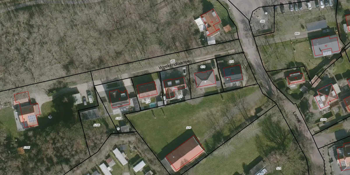 Het perceel waarop Weekendlaantje 1-a staat heeft een oppervlakte van 310 m². Dit is een groot perceel. De perceeloppervlakte wordt geregistreerd door het Kadaster. Gedetailleerde informatie over de maten van dit perceel kunt u vinden in het rapport Kadastrale kaart met maatvoering van Weekendlaantje 1-a.