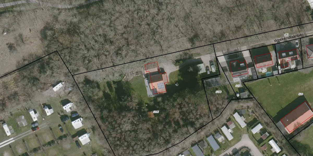 Weekendlaantje 7 is gelegen op kadastraal perceel WTS00H1235. Deze kadastrale aanduiding is uniek en wordt gebruikt door het Kadaster om eigendomsrechten en andere zakelijke rechten vast te leggen. Het perceel maakt onderdeel uit van de kadastrale gemeente Westerschouwen.