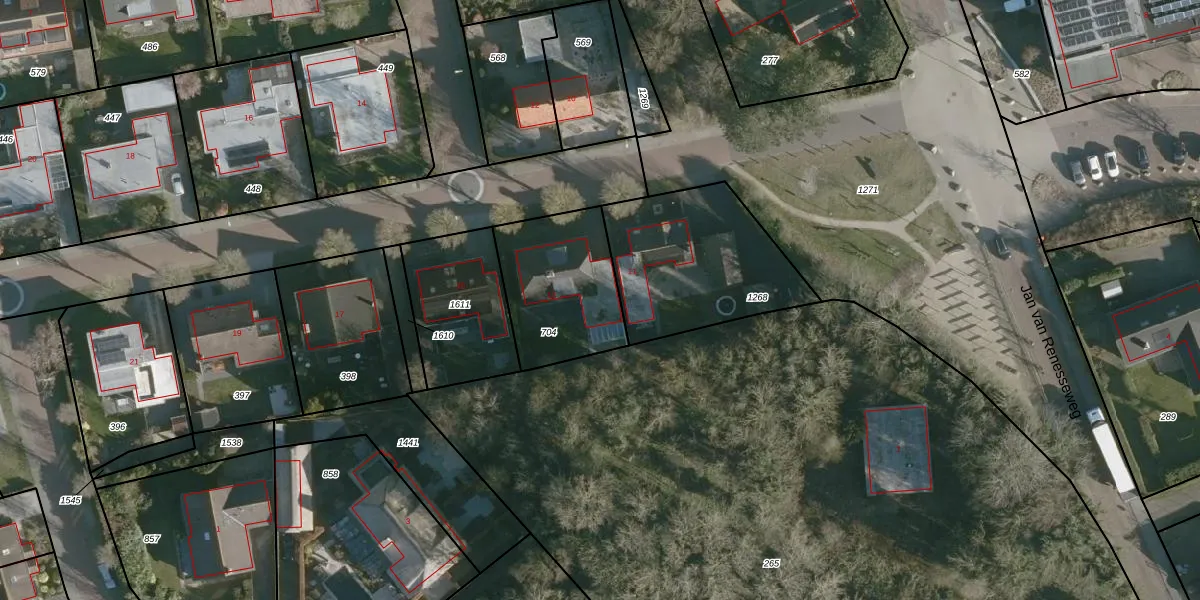 Gebruik de zoekbalk of klik op een perceel voor informatie over de adressen binnen dit perceel.