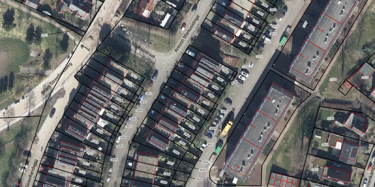 Antoon Markusstraat 21 is gelegen op kadastraal perceel RKM00B2490. Deze kadastrale aanduiding is uniek en wordt gebruikt door het Kadaster om eigendomsrechten en andere zakelijke rechten vast te leggen. Het perceel maakt onderdeel uit van de kadastrale gemeente Renkum.