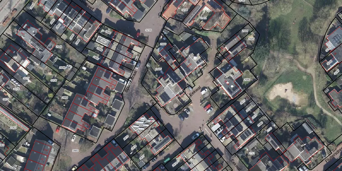 Het perceel waarop Eekwal 45 staat heeft een oppervlakte van 1065 m². Dit is een zeer groot perceel. De perceeloppervlakte wordt geregistreerd door het Kadaster. Gedetailleerde informatie over de maten van dit perceel kunt u vinden in het rapport Kadastrale kaart met maatvoering van Eekwal 45.
