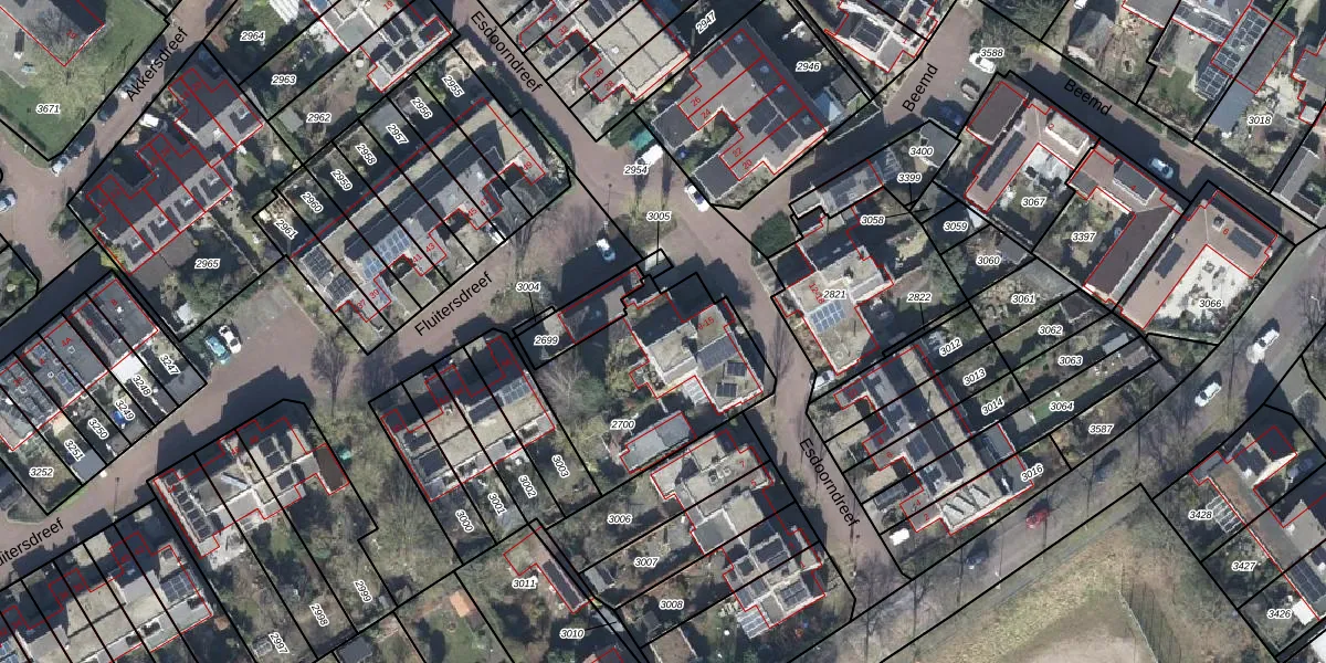 Het perceel waarop Esdoorndreef 13 staat heeft een oppervlakte van 697 m². Dit is een groot perceel. De perceeloppervlakte wordt geregistreerd door het Kadaster. Gedetailleerde informatie over de maten van dit perceel kunt u vinden in het rapport Kadastrale kaart met maatvoering van Esdoorndreef 13.