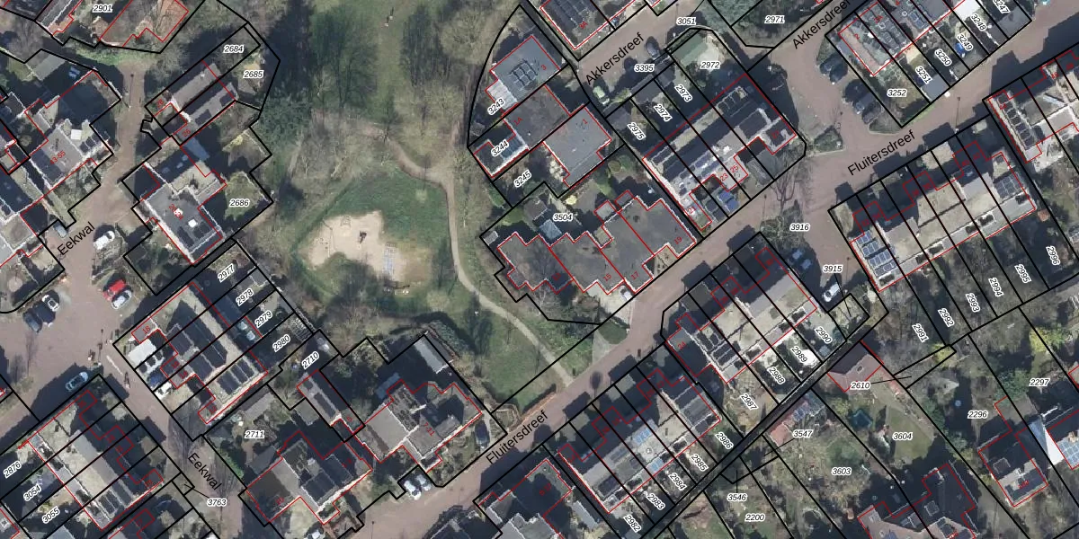 Fluitersdreef 13 is gelegen op kadastraal perceel RKM00B3504. Deze kadastrale aanduiding is uniek en wordt gebruikt door het Kadaster om eigendomsrechten en andere zakelijke rechten vast te leggen. Het perceel maakt onderdeel uit van de kadastrale gemeente Renkum.