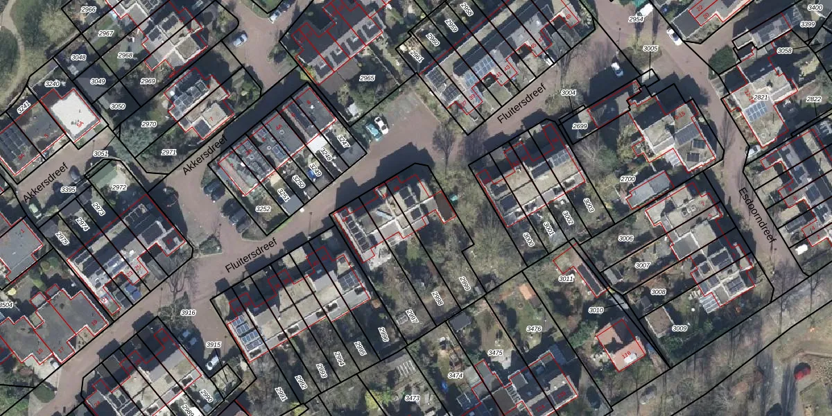 Het perceel waarop Fluitersdreef 48 staat heeft een oppervlakte van 345 m². Dit is een groot perceel. De perceeloppervlakte wordt geregistreerd door het Kadaster. Gedetailleerde informatie over de maten van dit perceel kunt u vinden in het rapport Kadastrale kaart met maatvoering van Fluitersdreef 48.