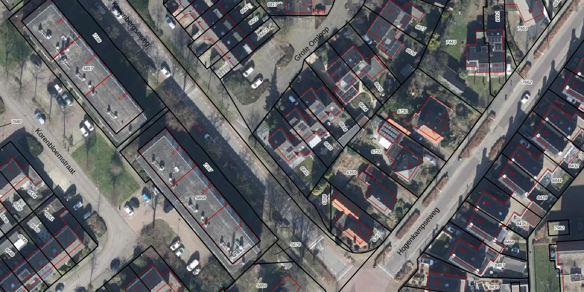 Gebruik de zoekbalk of klik op een perceel voor informatie over de adressen binnen dit perceel.