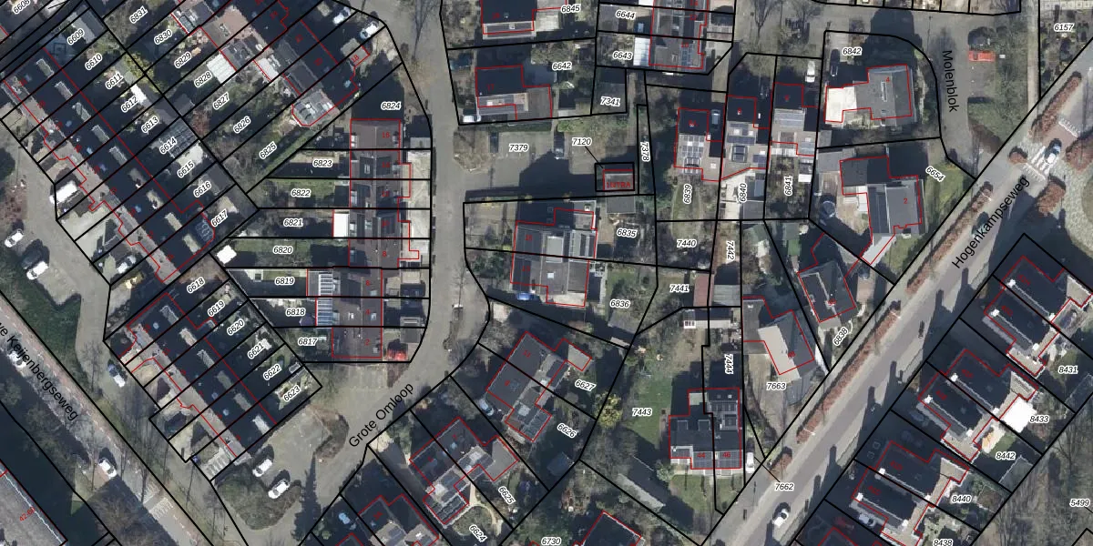 Gebruik de zoekbalk of klik op een perceel voor informatie over de adressen binnen dit perceel.
