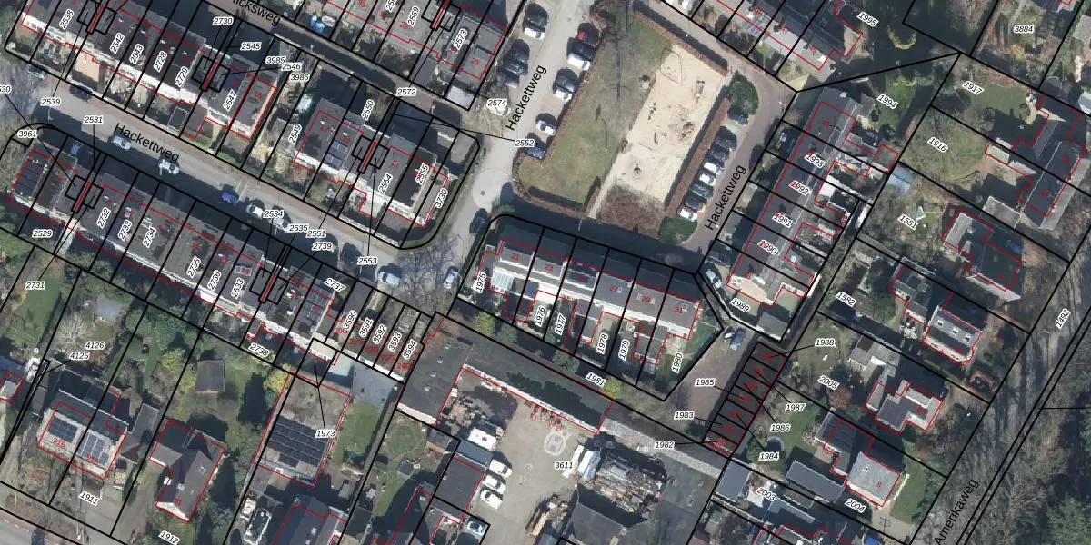 Gebruik de zoekbalk of klik op een perceel voor informatie over de adressen binnen dit perceel.