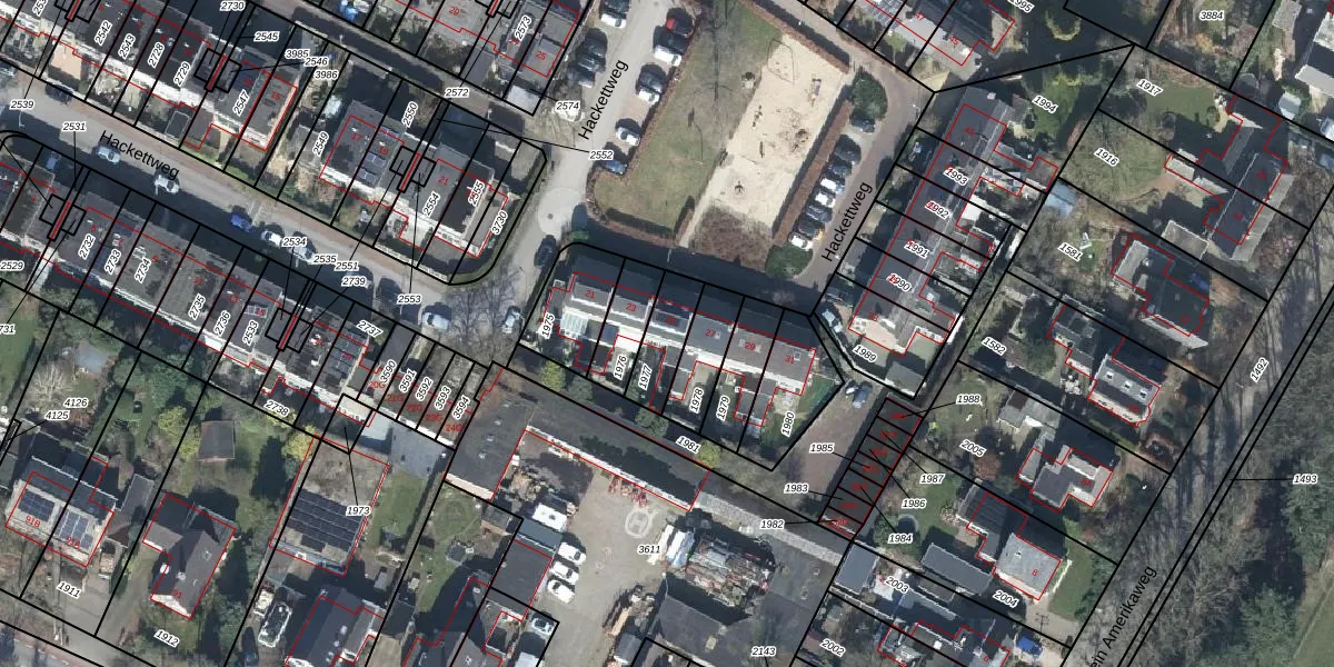 Gebruik de zoekbalk of klik op een perceel voor informatie over de adressen binnen dit perceel.