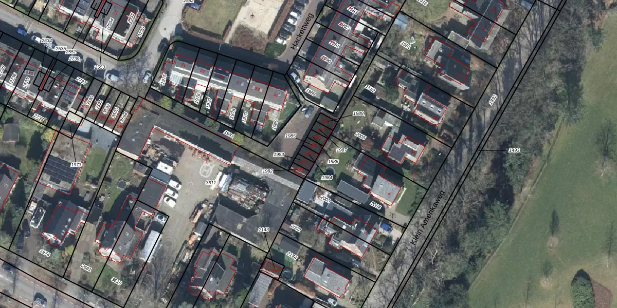 Gebruik de zoekbalk of klik op een perceel voor informatie over de adressen binnen dit perceel.