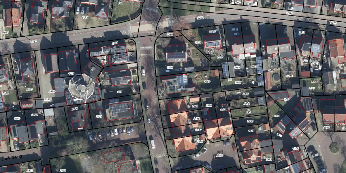 Kerkstraat 53 is gelegen op kadastraal perceel RKM00D2456. Deze kadastrale aanduiding is uniek en wordt gebruikt door het Kadaster om eigendomsrechten en andere zakelijke rechten vast te leggen. Het perceel maakt onderdeel uit van de kadastrale gemeente Renkum.
