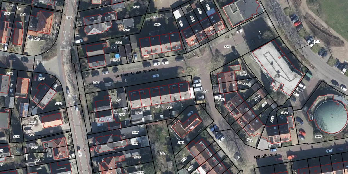 Het perceel waarop Meester Oosteromweg 13 staat heeft een oppervlakte van 840 m². Dit is een groot perceel. De perceeloppervlakte wordt geregistreerd door het Kadaster. Gedetailleerde informatie over de maten van dit perceel kunt u vinden in het rapport Kadastrale kaart met maatvoering van Meester Oosteromweg 13.