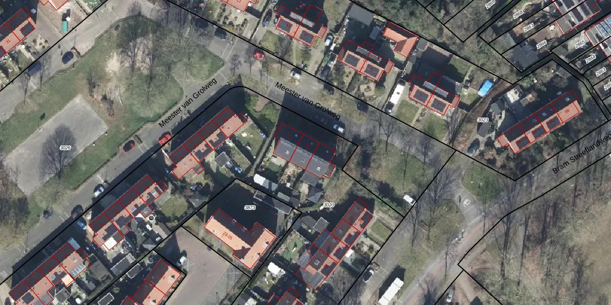 Het perceel waarop Meester van Grolweg 2-A staat heeft een oppervlakte van 8300 m². Dit is een zeer groot perceel. De perceeloppervlakte wordt geregistreerd door het Kadaster. Gedetailleerde informatie over de maten van dit perceel kunt u vinden in het rapport Kadastrale kaart met maatvoering van Meester van Grolweg 2-A.