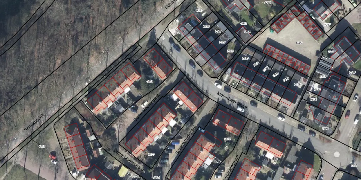 Het perceel waarop Molenbeekstraat 42 staat heeft een oppervlakte van 1050 m². Dit is een zeer groot perceel. De perceeloppervlakte wordt geregistreerd door het Kadaster. Gedetailleerde informatie over de maten van dit perceel kunt u vinden in het rapport Kadastrale kaart met maatvoering van Molenbeekstraat 42.