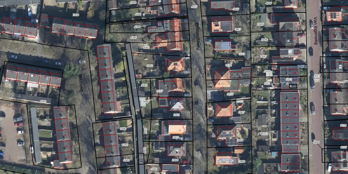Gebruik de zoekbalk of klik op een perceel voor informatie over de adressen binnen dit perceel.