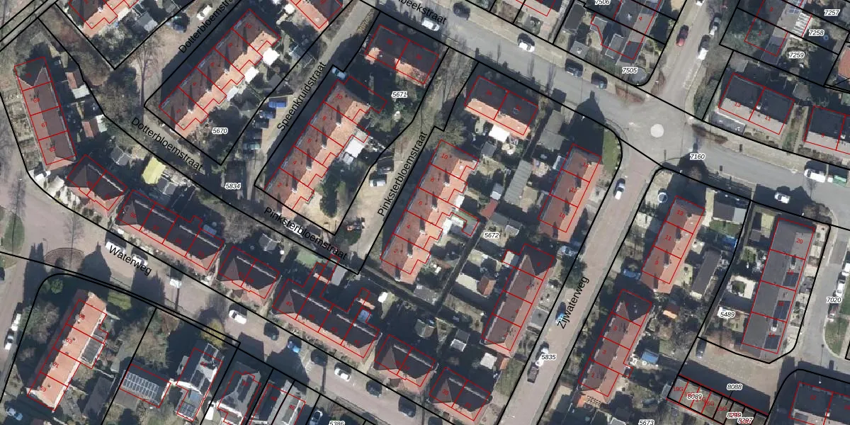 Het perceel waarop Pinksterbloemstraat 6 staat heeft een oppervlakte van 5550 m². Dit is een zeer groot perceel. De perceeloppervlakte wordt geregistreerd door het Kadaster. Gedetailleerde informatie over de maten van dit perceel kunt u vinden in het rapport Kadastrale kaart met maatvoering van Pinksterbloemstraat 6.